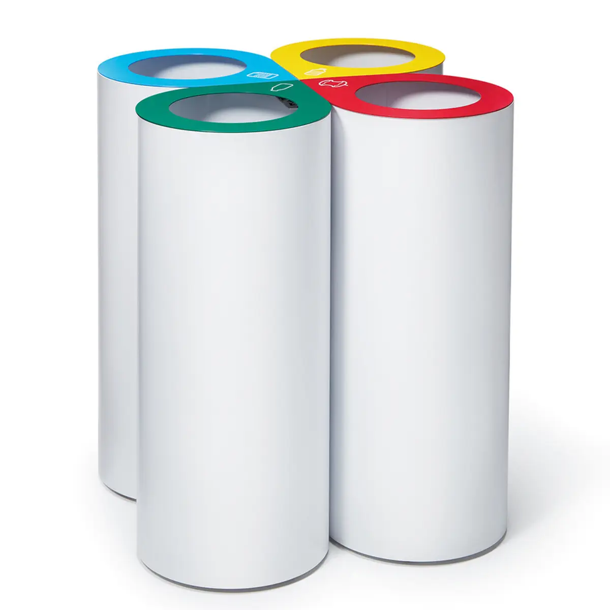De multiples couleurs de couvercle et pictogrammes pour les différents éléments à trier.