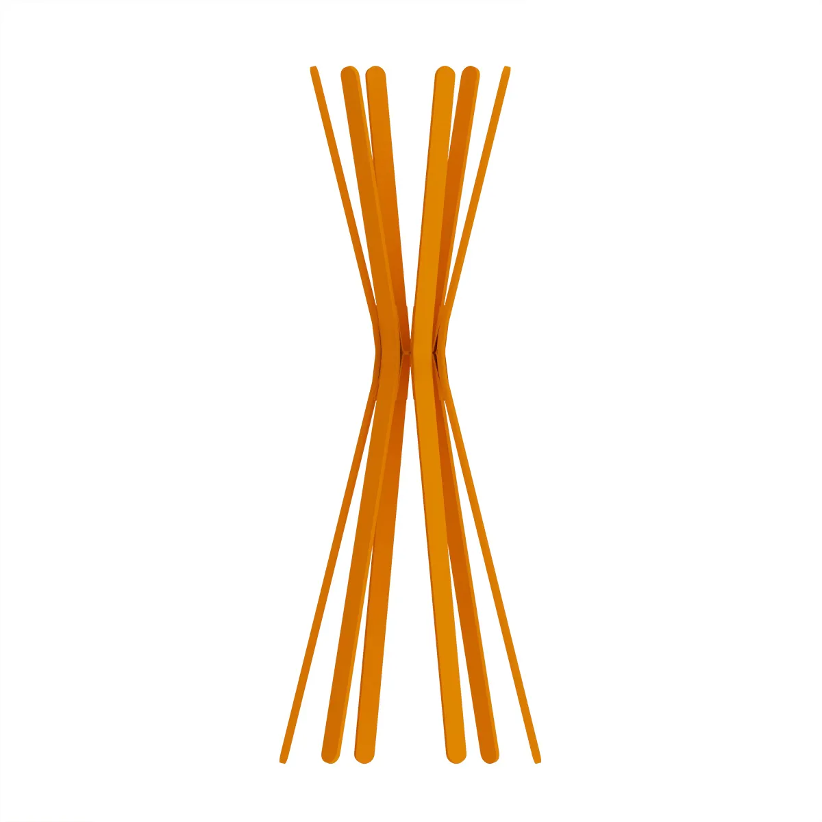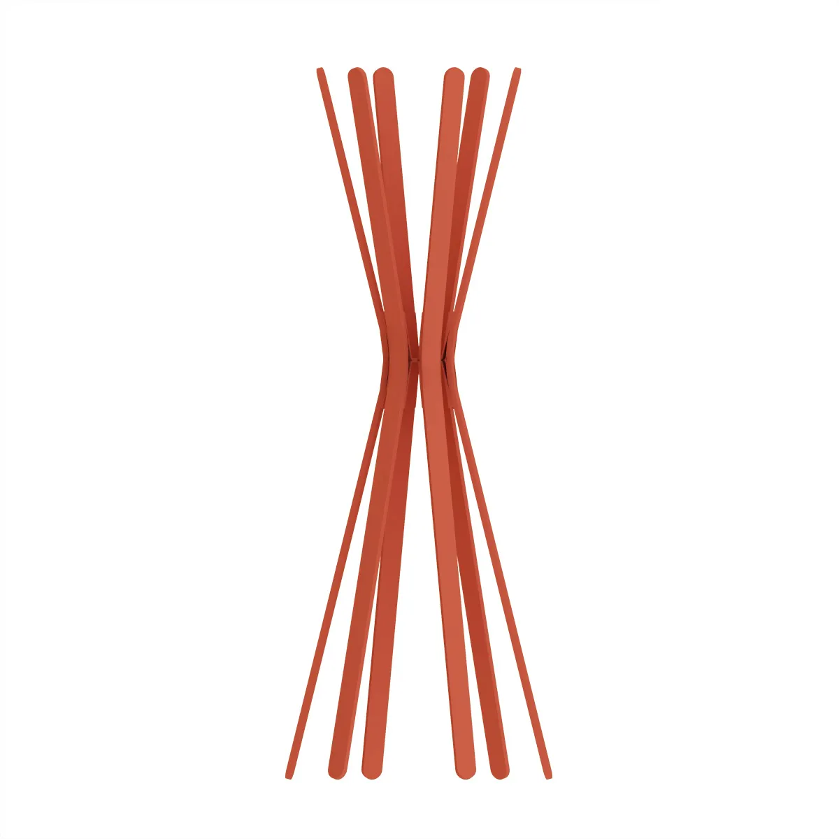 Les lattes de bois de hêtre courbées s’écartent pour former des patères.