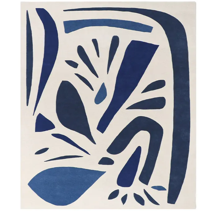 Alpha Bleu est un tapis abstrait avec une composition graphique audacieuse qui dialogue harmonieusement avec les intérieurs contemporains.