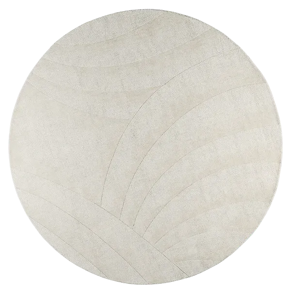 Volute Rond Écru est un tapis sculpté, alliance parfaite entre pureté géométrique et virtuosité artisanale.