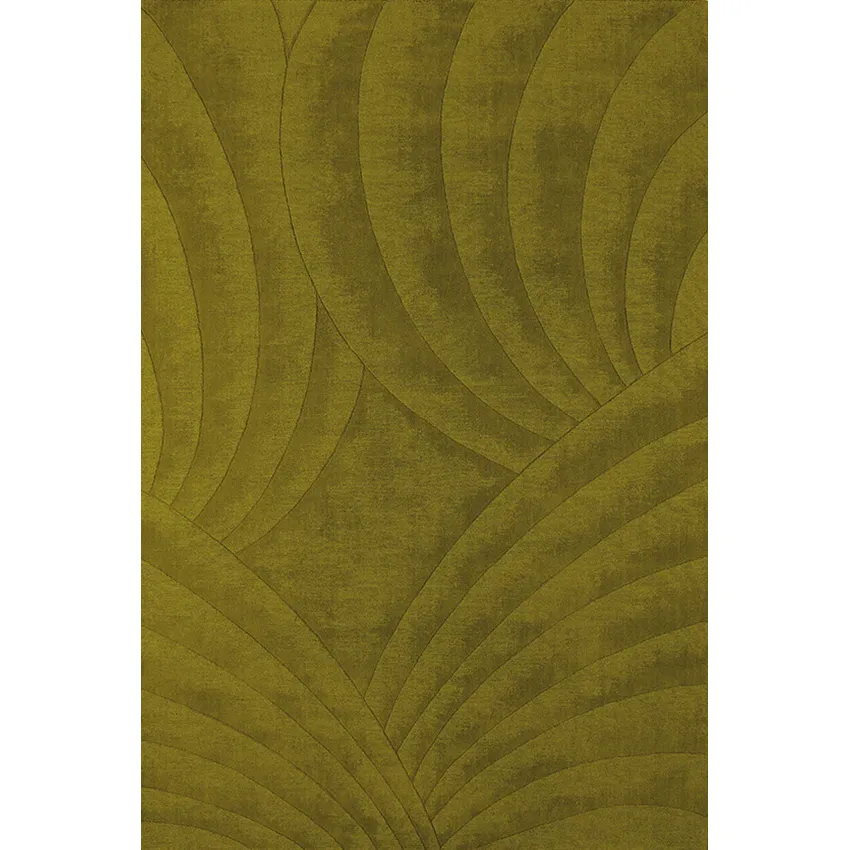 Volute Vert est un tapis sculpté, alliance parfaite entre pureté géométrique et virtuosité artisanale.